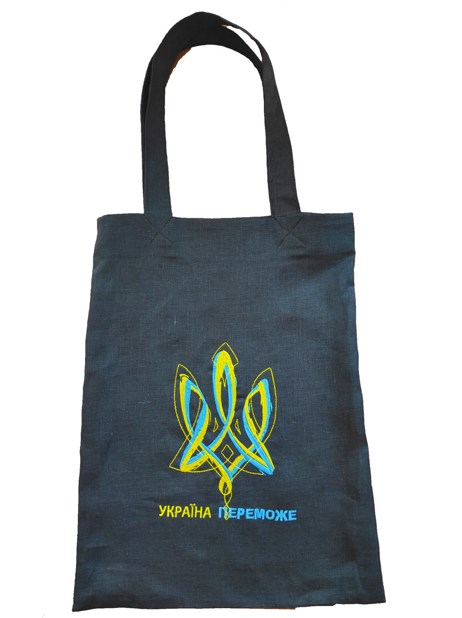 Еко-сумка (шопер) з натурального чорного льону з вишивкою "Доброго вечора! Ми з України!"